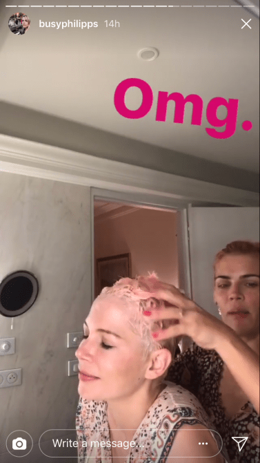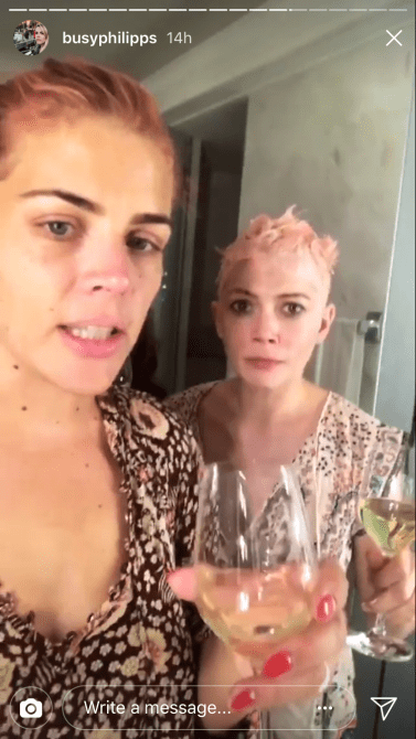 In case you haven’t heard (or aren’t a viewer of Busy Philipps‘s widely acclaimed Instagram stories), Philipps’s best friend, Michelle Williams, has a millennial pink pixie cut. But Williams’s pink hair isn’t just any pink hair—it was dyed by Philipps herself when the two were drunk on wine last night.