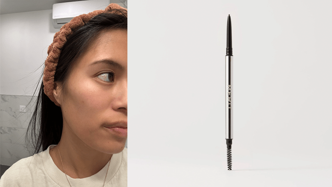 “I once had a makeup artist tell me to go one shade lighter than my actual hair color for an eyebrow pencil. As someone with dark brown Asian hair, I always gravitated to soft black pencils. I decided to test out this MUA’s tip. Filling in the tails of my brows per normal, I used Merit Beauty sheer gel pencil in Dark Brown. Again, I previously would’ve chosen Dark Brown. Truthfully, my eyes couldn’t tell a noticeable difference in the way my brows looked up close or from far away. I will say, though, that I enjoyed the fine tip applicator. It made keeping the tails of my brows pointed instead of rounded.” — Kaili JiMei, Social Media Manager