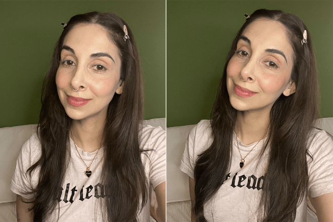 “Merit just knows how to make a good, convenient makeup product. Its Flush Balm blushes are truly elite in that they create a natural pop of color that’s not too much, and not too little—the Goldilocks of blushes if you will! In the photo above, I only applied the shade Cheeky to my right side (left in the photo), so you can see what one side looks like with blush and what one side looks like without. It’s fairly long-lasting, although since I have oily skin I do find that I need to touch up mid-day.” — Gina Vaynshteyn, Senior Commerce Director