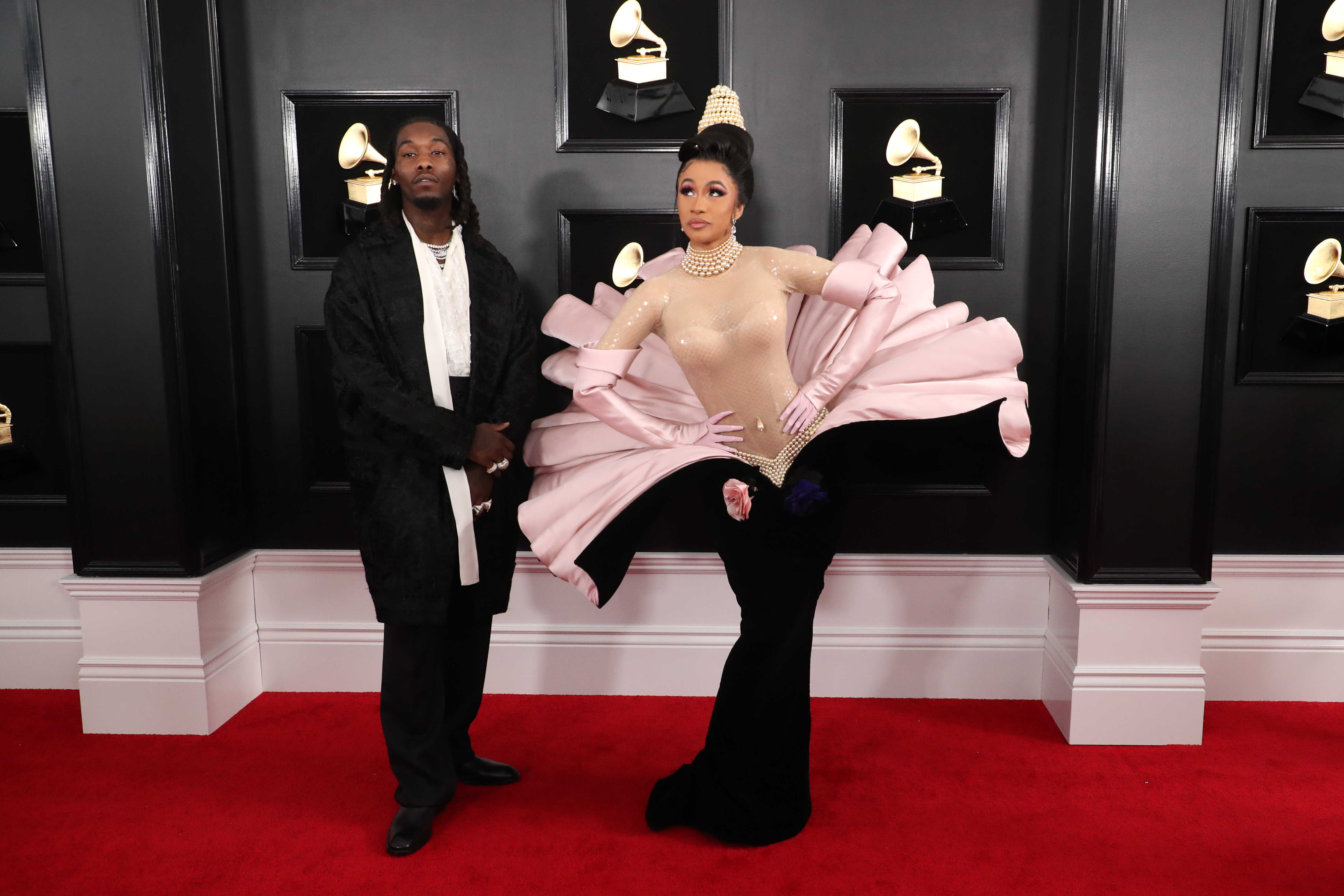 The Grammy Awards are always a hotbed of wild celebrity fashion, and each year, musicians seem to outdo their previous looks. The 2018 Grammys were Cardi B‘s first, so she started with a fresh Grammy red carpet slate. We didn’t know what look she would bring, but her feathery white dress slayed. For Cardi B’s 2019 Grammys look, we expected another instantly iconic ensemble, and we were not disappointed. Cardi B wore what I can only describe as a high-fashion oyster costume, and while I’m at an absolute loss for words, I’m also bowing down to queen Cardi B—because at this point, how could I not?