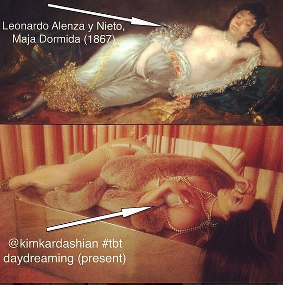 Recently, the actor posted a photo of Kardashian next to a painting by Spanish artist Leonardo Alena titled “Maja Dormida” from the 19th century, along with a link to an article that appeared on Artnet titled “Ways Of Seeing Instagram”.