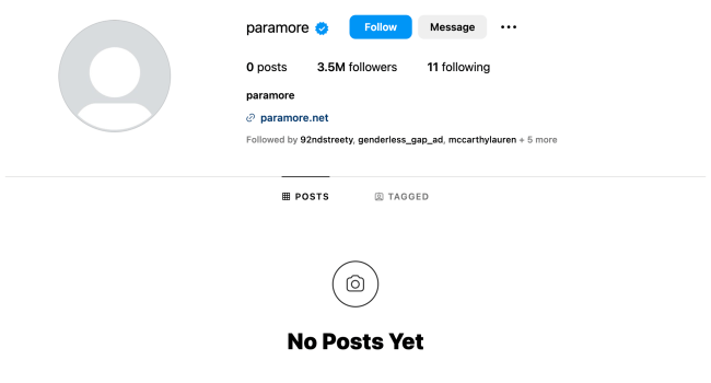 Some people thought they might have broken up because their official Paramore Instagram account, with more than 3.5 million followers, has been totally wiped—same with Hayley Williams. Their website, too, delivers a 404 error, meaning the webpage does not exist. That’s as of December 26, 2023.