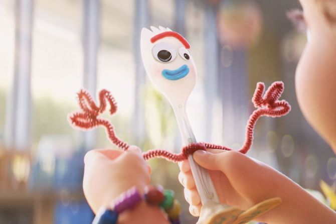 Deciding to step out on fate–Woody hides away in Bonnie’s backpack and joins her on her first day of Kindergarten where he inadvertently helps her craft Forky–a terrorized spork (Tony Hale) that unwittingly becomes her favorite new toy. Despite every effort to weasel away from Bonnie and throw himself the trash, the little girl clings to Forky until he makes a grand escape that sends Woody off on quite the journey after him. So what does all of this mean?