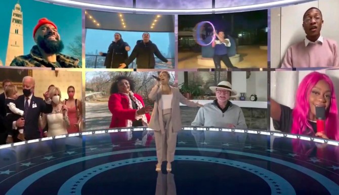The singer geared up for her performance by watching the ceremony like all of us. “President @joebiden and Madame Vice President @kamalaharris 🇺🇸 It is our time to unite, heal, and get to work,” she wrote on Instagram. She also shared a selfie in which she looks like she’s on her way to wherever they’re safely performing. Demi already had glam on, with pink eyeshadow that matches her pink pixie cut, as well as major false lashes and glossy lips.