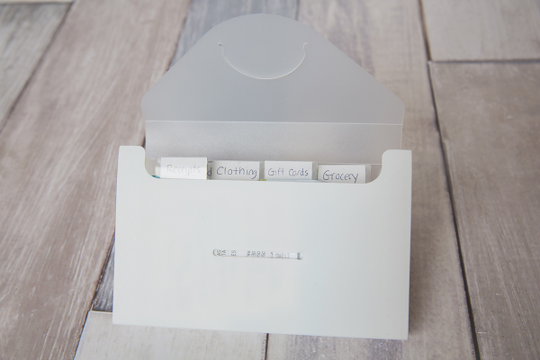 2. Put your coupons, receipts and gift cards in a tabbed envelope.