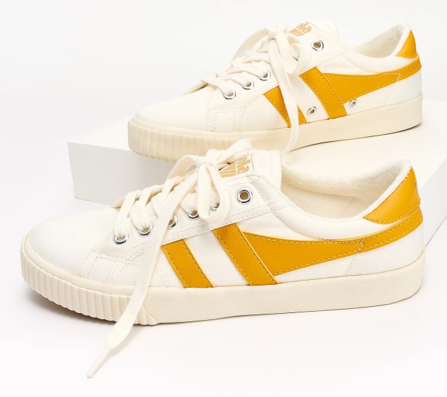 The Gola Vegan Canvas Lace-Up Sneakers are an iconic sneaker style inspired by a similar silhouette worn by tennis player Mark Cox in 1975. With their classic tennis shoe design, striking striped detailing, and 70s-esque colorways, these sneakers lean into the fashion’s modern love for retro designs and hues. The uppers are constructed in canvas with a comfortable and soft terry cloth lining. They also have a durable rubber sole with plenty of traction, a vulcanized midsole, and a removable cushioned insole, so you can add your own orthopedics or insoles (like the Fulton Classic Insoles) for added support and comfort.