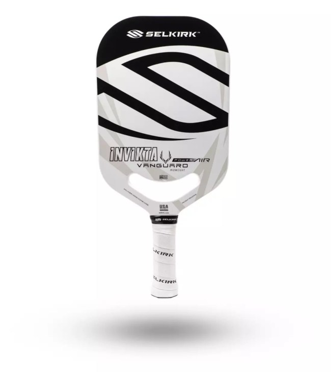 “There are different levels of paddles, depending on your ability,” my mother-in-law tells me. This Selkirk paddle, for instance, is highly rated among intermediate to advanced pickleball players. It’s thinner than many models out there and made from a blend of fiberglass and carbon fiber, which allows for some serious spin and power.